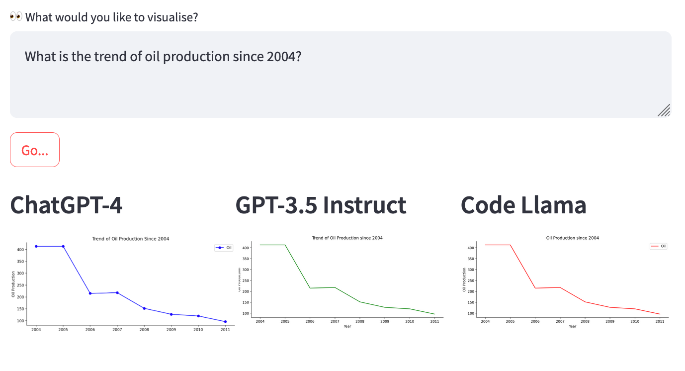 However, taking into consideration the comparable results of ChatGPT-3.5 in the journal article and previous blog, together with the lower cost of the GPT-3.5 models (costs here), I would ultimately still choose ChatGPT-3.5. Nonetheless, it may be worthwhile to fine-tune a Code Llama model to further explore its capabilities, as it offers a cost-effective solution for Chat2VIS.