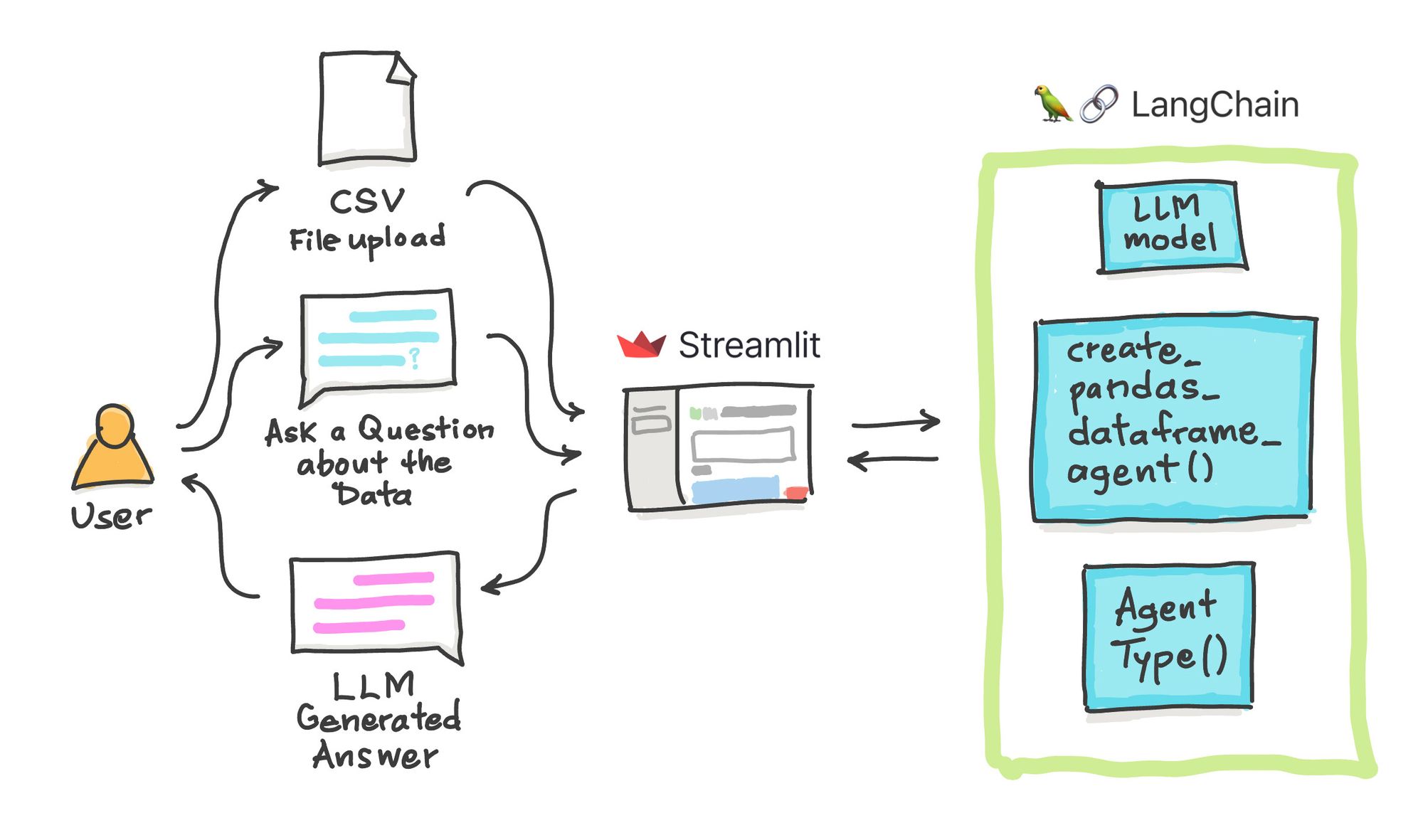 You've learned how to build an Ask the Data app that lets you ask questions to understand your data better. We used Streamlit as the frontend to accept user input (CSV file, questions about the data, and OpenAI API key) and LangChain for backend processing of the data via the pandas DataFrame Agent.