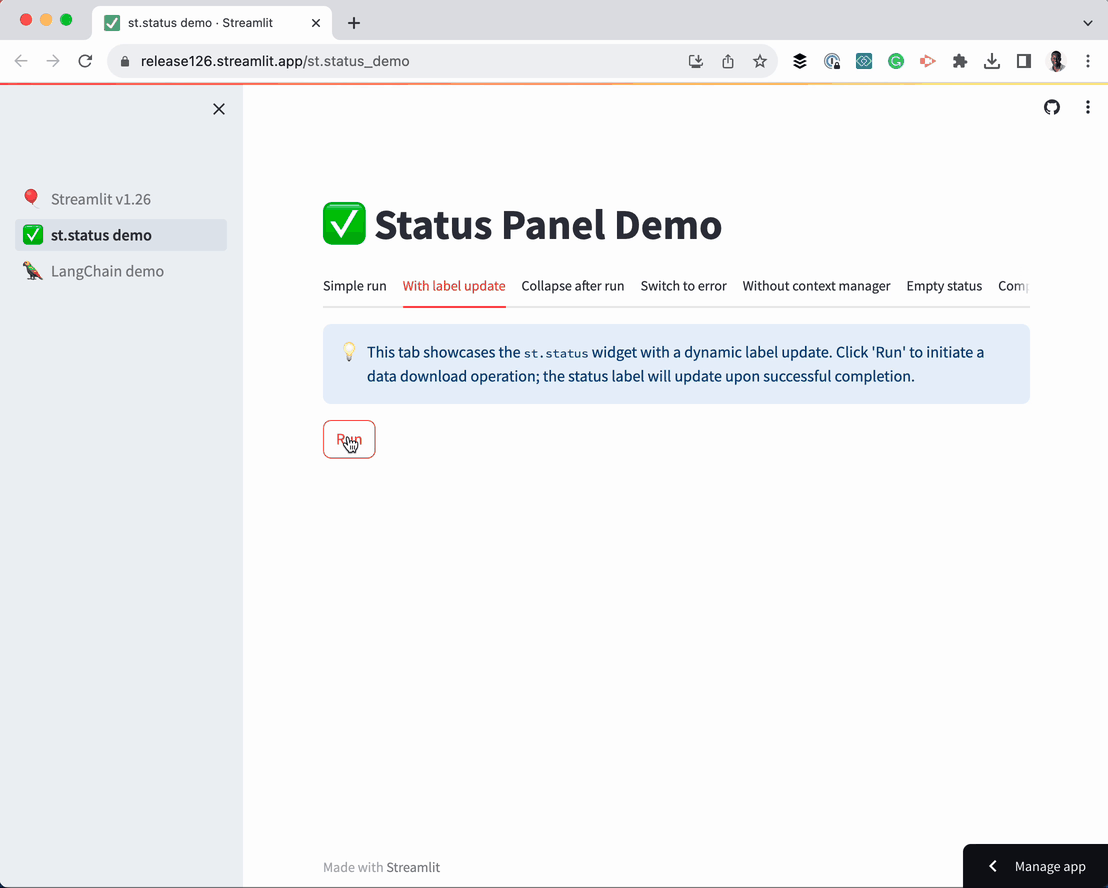 With st.status, every process step is defined, broken out, and animated. The app viewer can expand the status to check the details or leave it collapsed to focus on the final output.